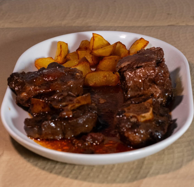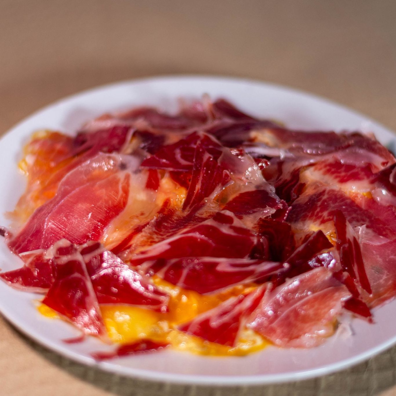 Huevos rotos con patata panadera y jamón ibérico. Una mezcla intensa de sabores.